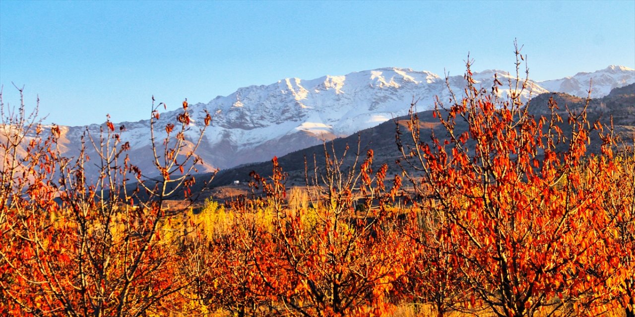 Sarı, yeşil ve kızıl tonlarının hakim olduğ u Berit Dağı, kar yağışının ardından kartpostallık manzaralarıyla kendisine hayran bıraktı.