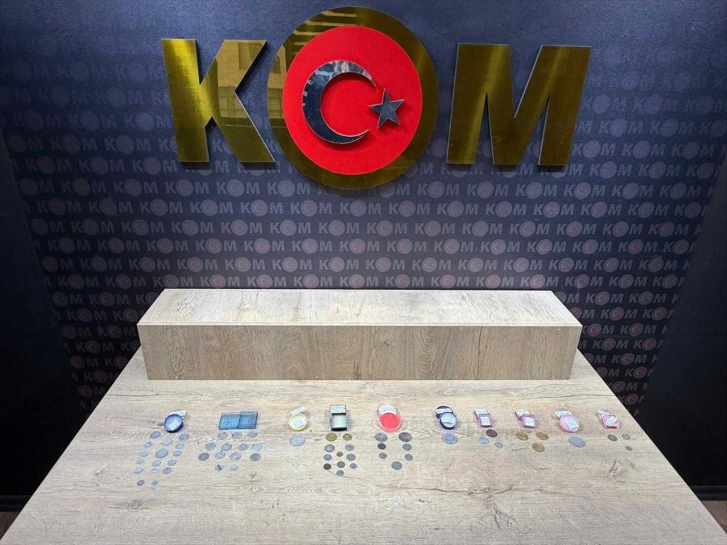 Belirlenen adrese düzenlenen operasyonda, Osmanlı dönemine ait olduğu değerlendirilen farklı boyutlarda 59 sikke ile 160 bin makaron ve 6 cep telefonu ele geçirildi.