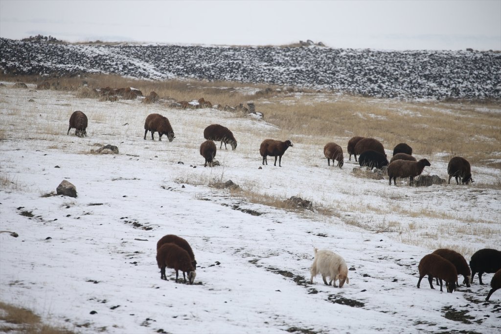 Kentte bazı besiciler de hayvanlarını kar yağışına rağmen dışarıda otlattı.