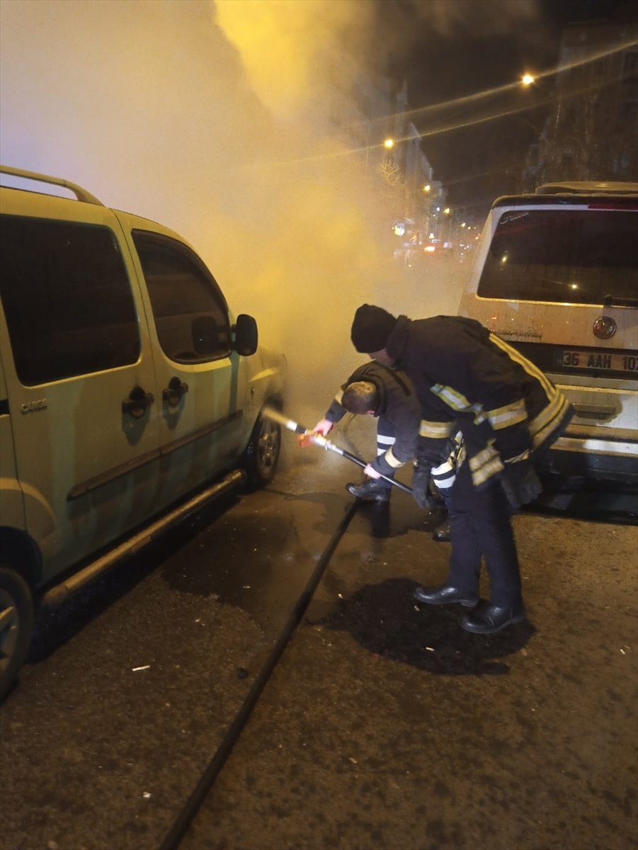 KARS (AA) - Kars'ta seyir halindeyken alev alan hafif ticari araç, kullanılamaz hale geldi.