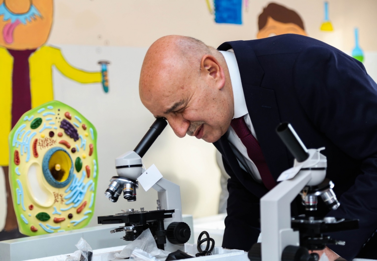 Başkan Altınok konuşmasının ardından öğrenci ve öğretmenlerle birlikte kurdele keserek laboratuvar ve kütüphanenin açılışını gerçekleştirdi.