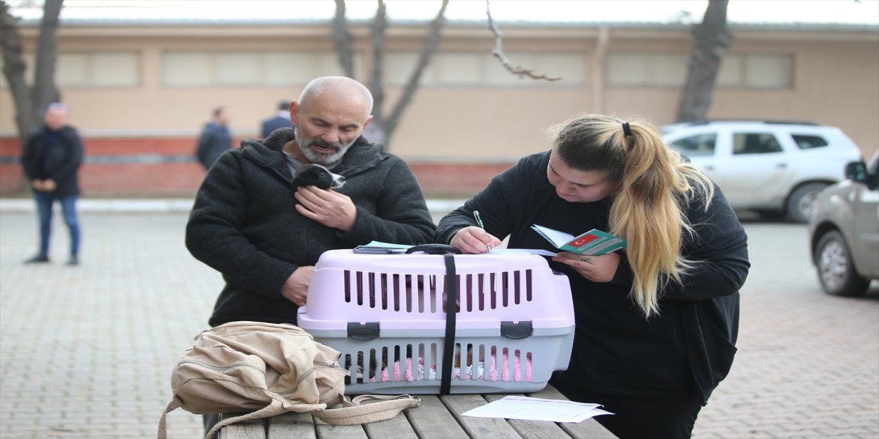 Kırklareli Tarım ve Orman Müdürlüğüne evcil hayvanlarıyla gelen vatandaşlar, çip işleminin ardından hayvanlarını "Ev Hayvanı Kayıt Sistemi"ne dahil ettiriyor.