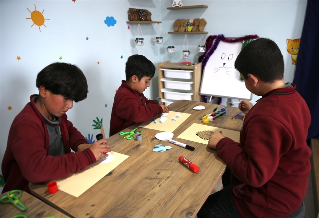 Okulun dördüncü sınıf öğrencisi Musab Mengeş, atölyede etkinlikler yaptıklarını belirterek, "Çizdiğimiz şekilleri ve resimleri kesip yapıştırıyoruz, şarkı söylüyoruz ve gösteri yapıyoruz. Atölyede çok eğleniyoruz. Eğitimimiz için çok iyi oluyor. Çok eğleniyoruz, öğreniyoruz. Buradaki etkinlikler becerilerimizi çok etkiliyor." ifadelerini kullandı.