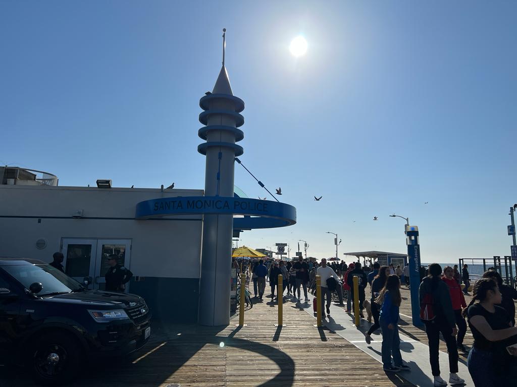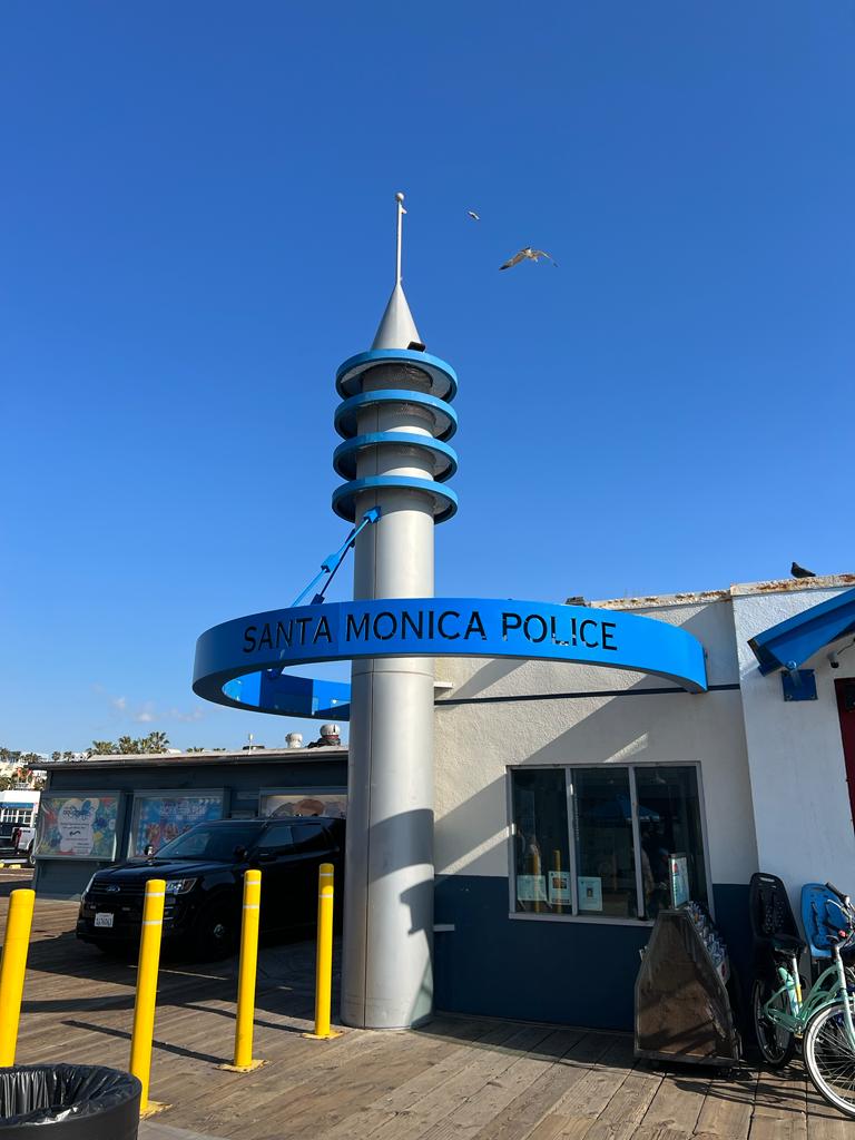 ABD’nin batı yakasındaki en büyük eyaleti Kaliforniya’nın en önemli şehri Los Angeles’ın en çok turist çeken noktalarından biri olan Santa Monica İskelesi’nin girişindeki küçük polis karakolunun önünde dört şerefeli cami minaresi görünümlü bir kule var.