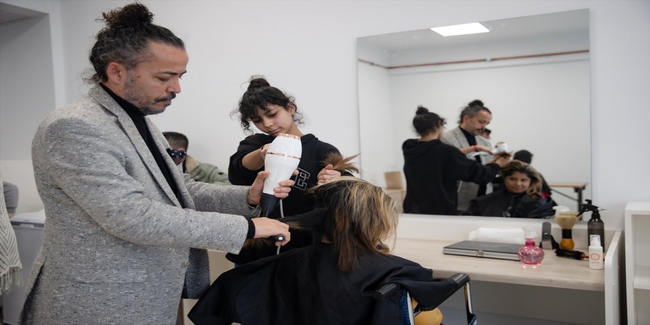 Öğrenci yurdunda kalan depremzede kadınlara kuaför hizmeti.