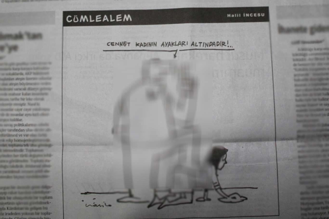 Bugün gelinen noktada ise PKK çizgisinde yayın yapan Özgür Gündem Gazetesi'nde, ucubelikten de öte İslam'ın kutsallarını hedef alan bir karikatür yayınlandı. Halil İncesu imzasıyla çizilen söz konusu karikatürde, Peygamberimiz Hz. Muhammed'in kadınlarla ilgili "Cennet annelerin ayakları altındadır" hadis-i şerifine atıf yapılarak hakaret edildiği görüldü. Gazete sayfalarında yer verilen bu karikatür bir de internet sayfasından yayınlandı. Tabi bu gazete ve karikatüristi Halil İncesu'nun İslam'ın kutsallarına ilk hakareti değil. Daha önce de Hz. Adem ve Havva'yı çok uygunsuz bir şekilde karikatürize ederek hakaret etmişti.