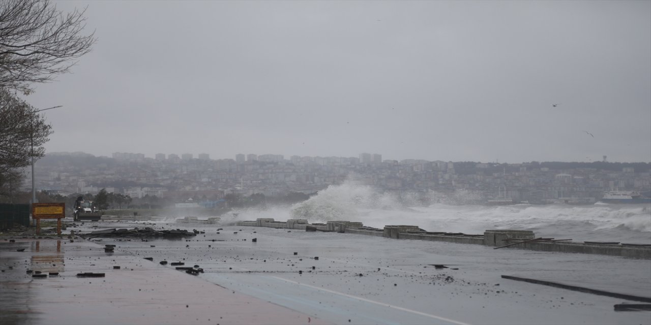 Olumsuz hava koşullarının etkili olduğu bölgede boyu 5 metreyi bulan dalgalar, Doğupark'taki sahil yoluna ve duvarlara zarar verdi.