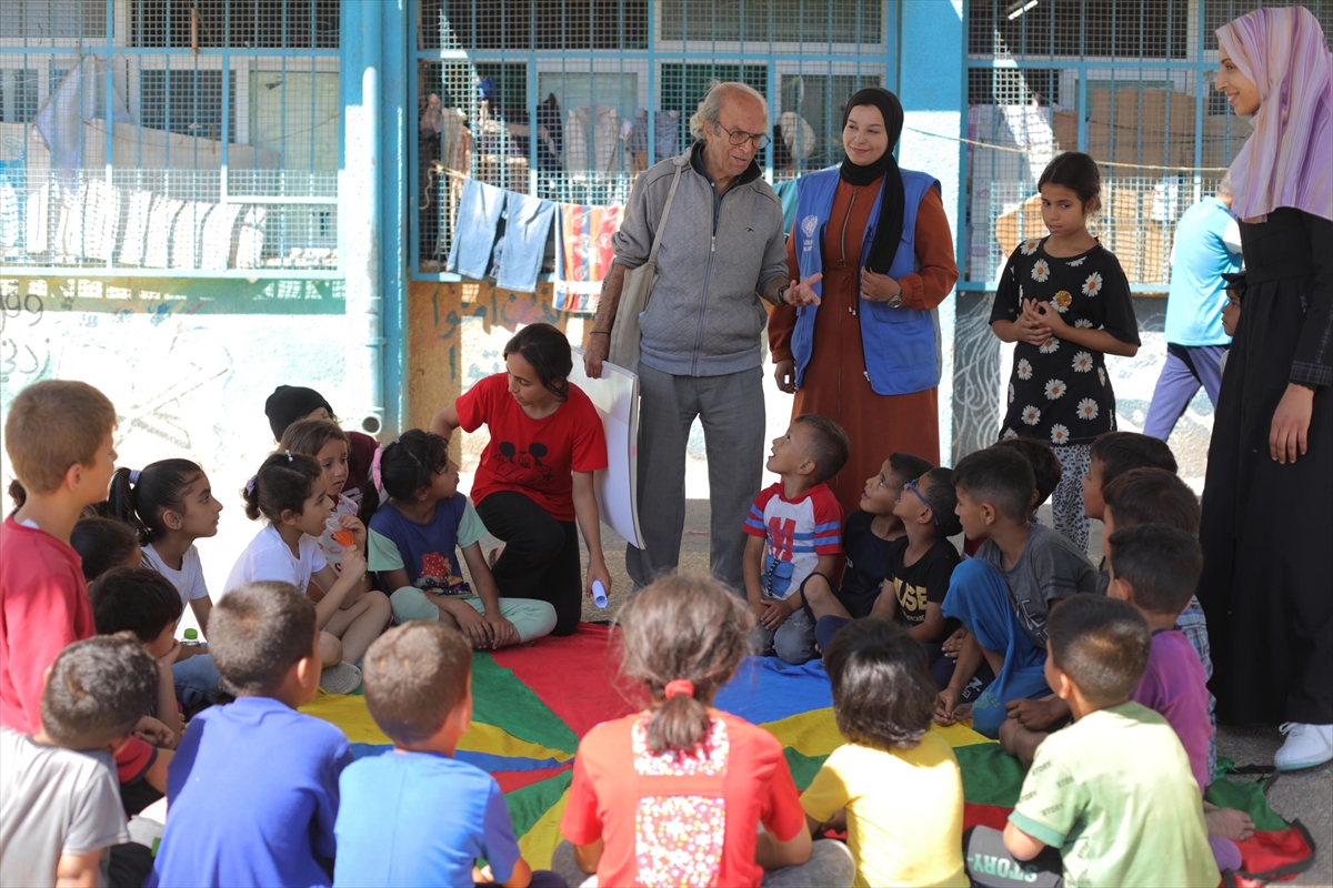 Kendisi de 15 yıl boyunca UNRWA okullarında resim öğretmenliği yapan Guf, çocuklara olan sevgisi ve onların, savaş ortamında her şeyden mahrum olmalarına duyduğu üzüntüyle harekete geçti.