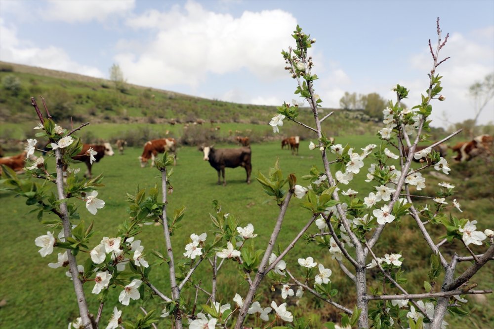 IĞDIR (AA) - Havaların ısındığı Iğdır'ın dağlarındaki yaylalarda meralar yeşillendi, meyve ağaçları çiçek açtı.