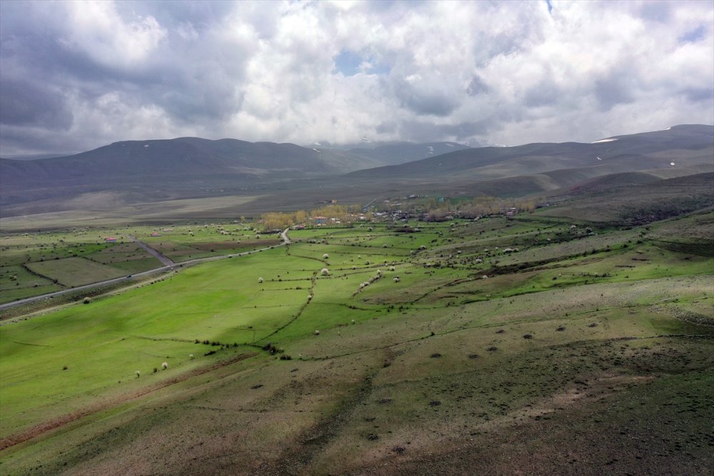 Aras Dağları'nın 2 bin metre rakımı ve üstündeki yayla ile yerleşim yerlerinde havaların ısınmasıyla meralar yeşillendi.