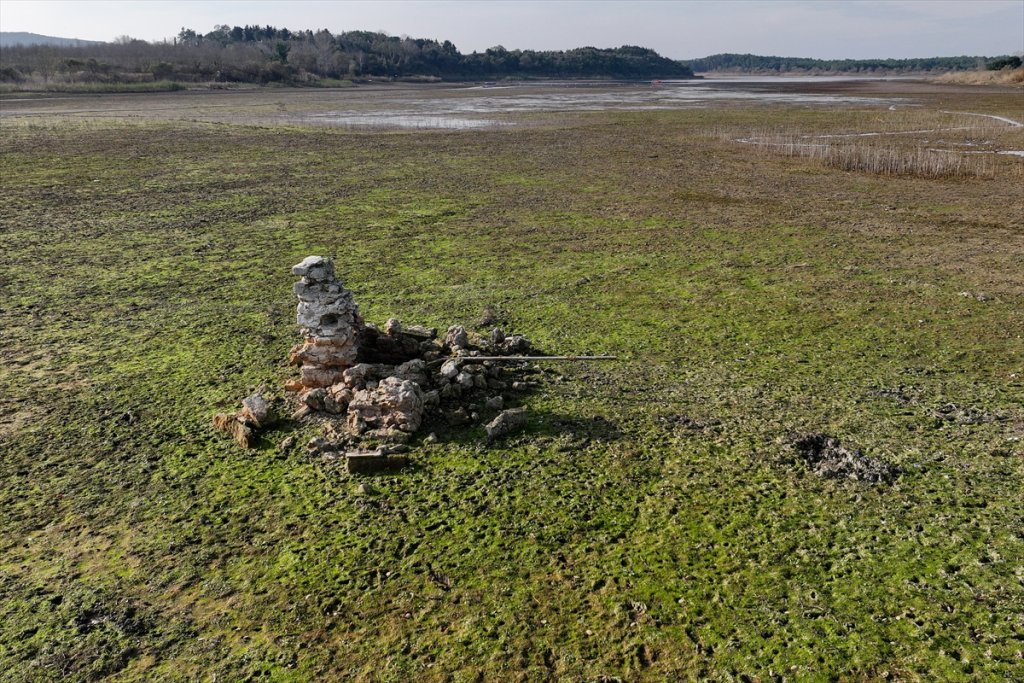 Terkos Gölü'ndeki su seviyesinin düşmesiyle tarihi yapıların kalıntıları ortaya çıktı