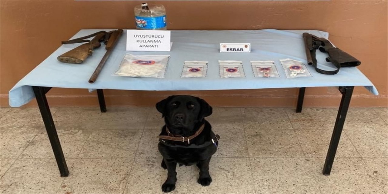 Aramalarda bir miktar kubar esrar, 2 ruhsatsız av tüfeği ve uyuşturucu kullanma aparatları ele geçirildi.