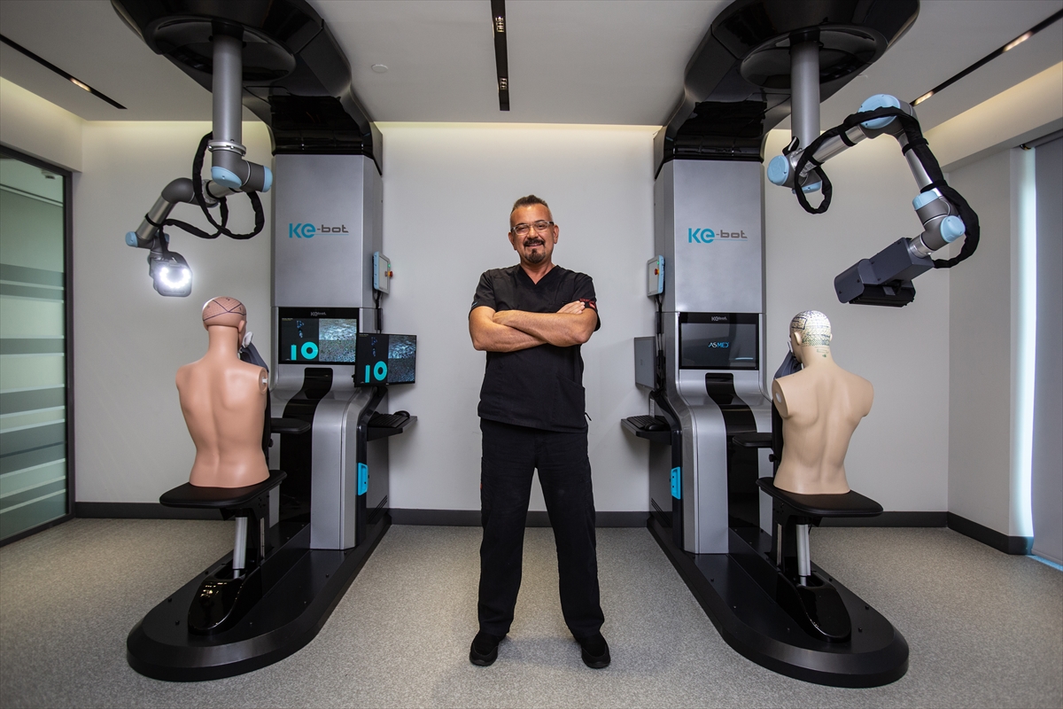 Urhan, yapay zekayı veriyle beslemek gerektiğine işaret ederek, "Yüzlerce, binlerce hastanın verisiyle yapay zekayı eğittik. Arka tarafta robotik sistemimiz var. Robot kolla kameraları kontrol ediyoruz ve kafanın doğru yerlerinden görüntüleri almaya çalışıyoruz. 30-40 mikrondan başlayıp 100 mikrona kadar giden çok çok ince saç kalınlıklarını ve sayısını ölçmeye çalışıyoruz." diye konuştu.