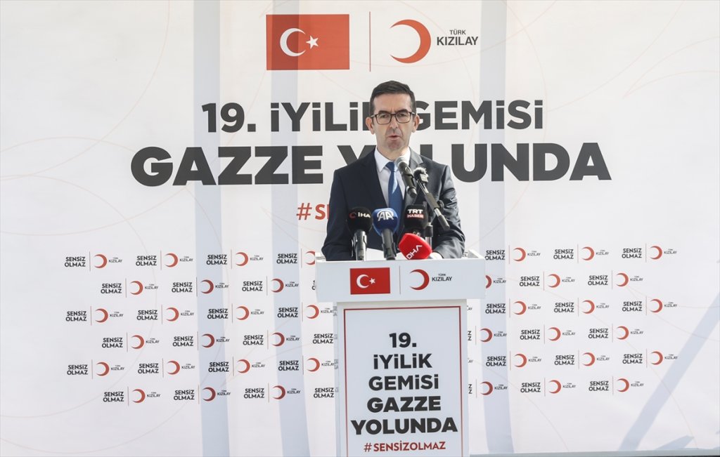 Türk Kızılayın Gazze'ye gönderilmek üzere hazırladığı, yaklaşık 1300 ton insani yardım malzemesi bulunan 19. "İyilik Gemisi", Mersin Uluslararası Limanı'ndan uğurlandı.