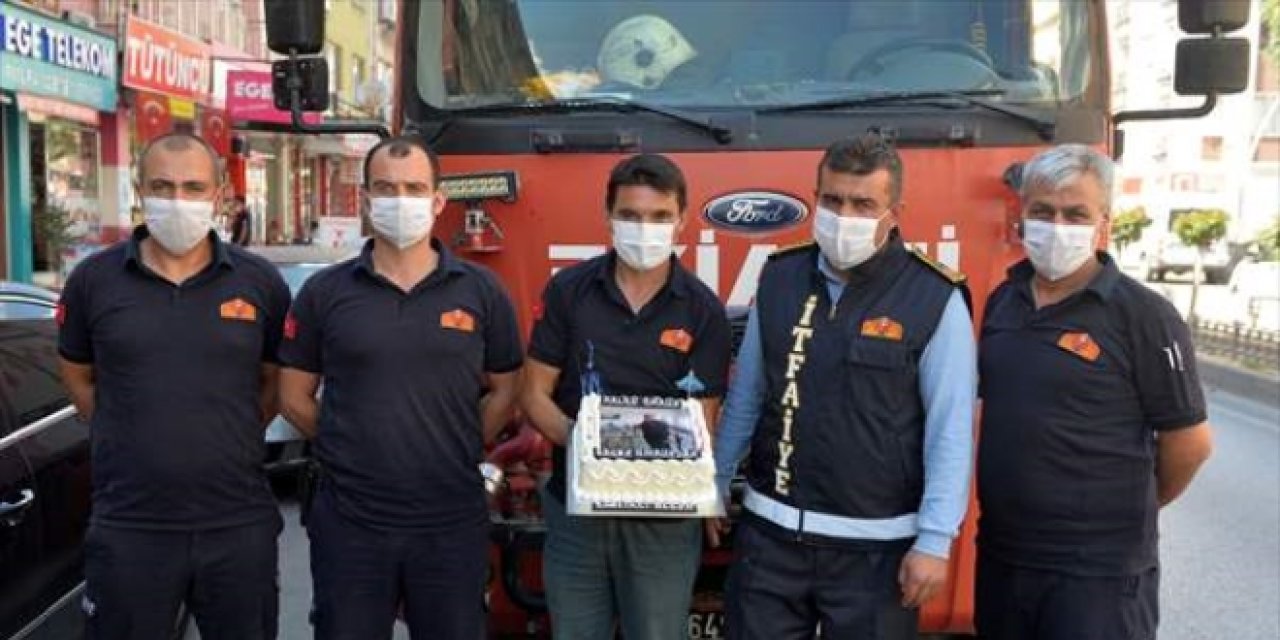 Uşak'ta bir yangın ihbarına giden itfaiye eri Erdoğan Tetik, mesai arkadaşlarının doğum günü sürpriziyle karşılaştı. Uşak İtfaiyesinde...