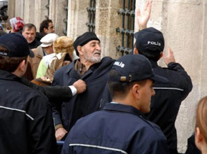 Korumalar tarafından Camiye alınmayan yaşlı adam Başbakan Erdoğan'a sert tepki gösterdi.