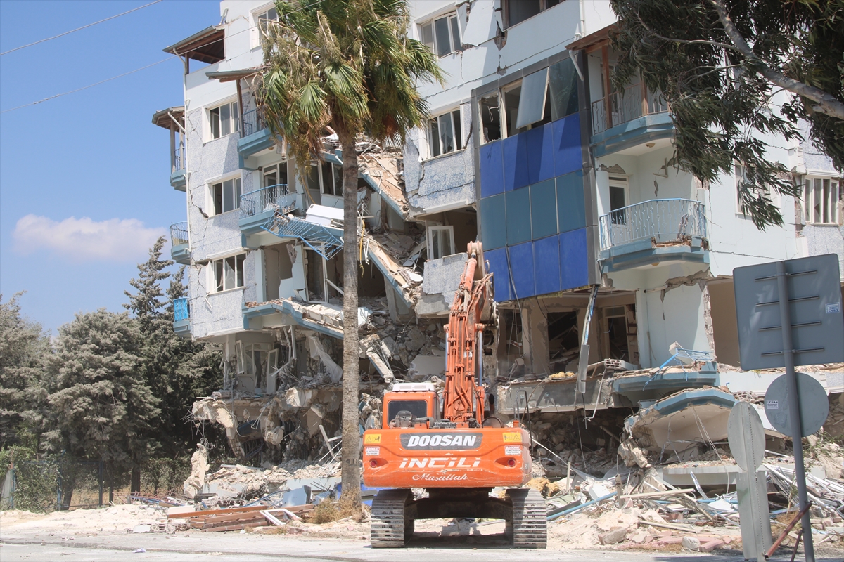 Hatay'da ağır hasarlı binaların yıkımı devam ediyor