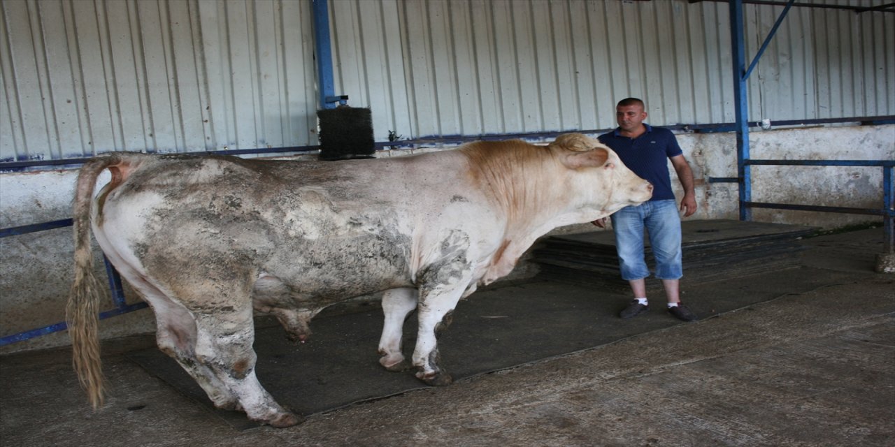 Bursa'da kurban için yetiştirilen 1 ton 250 kilogramlık boğa 40 bin liradan satışa sunuldu