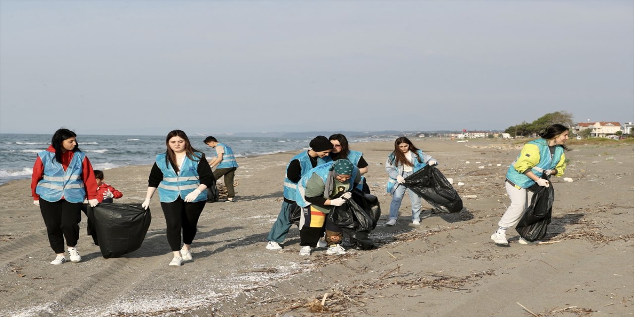 Sakarya'da gönüllü öğrenciler sahilde çevre temizliği yaptı