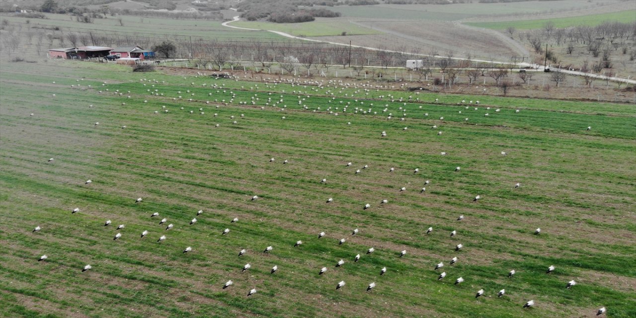 Müjdeci leylekler Bilecik'teki sulak arazilerde konaklama yaptı.