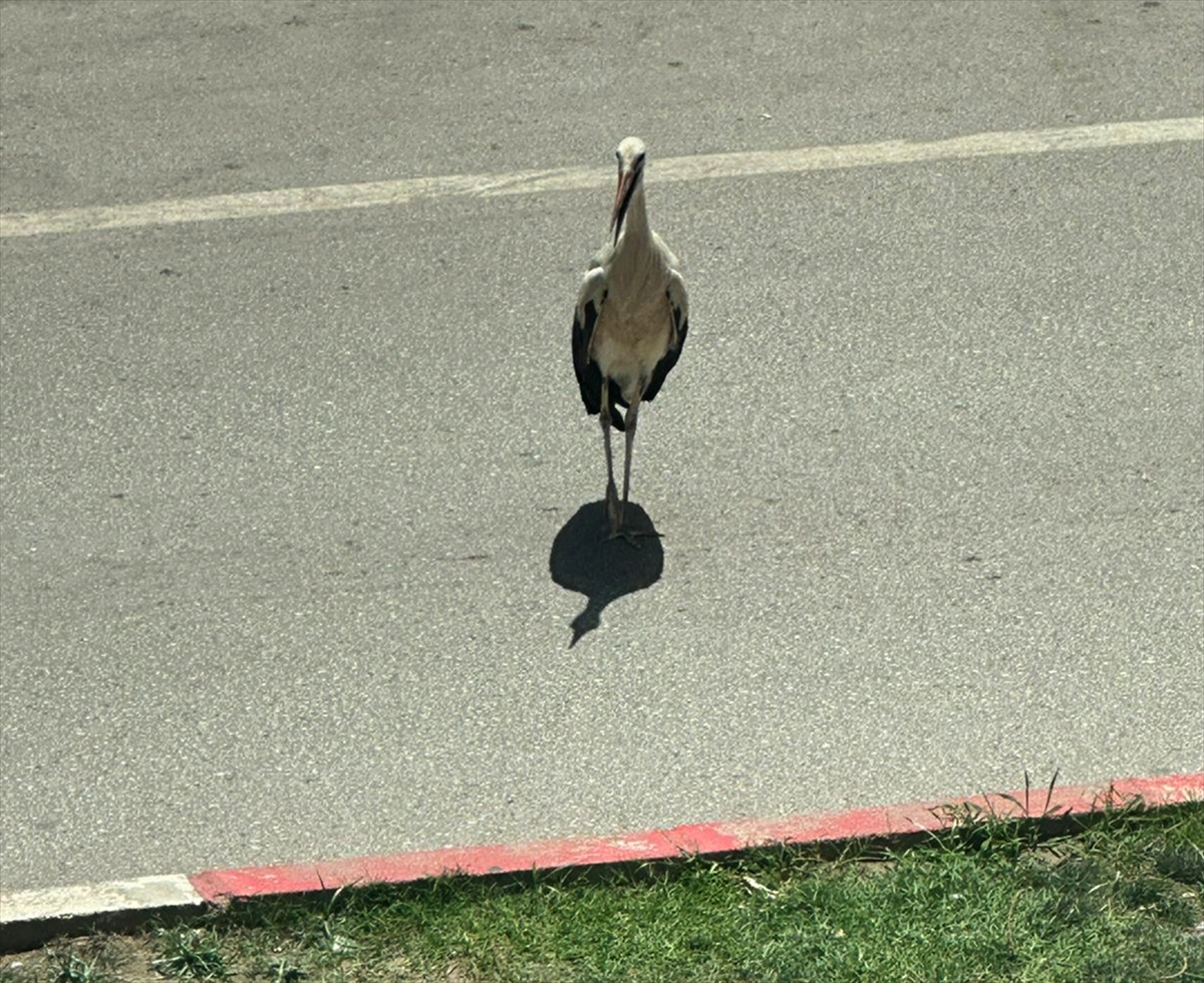 Sıcaktan etkilenen leylek, ağaç gölgesine sığındı