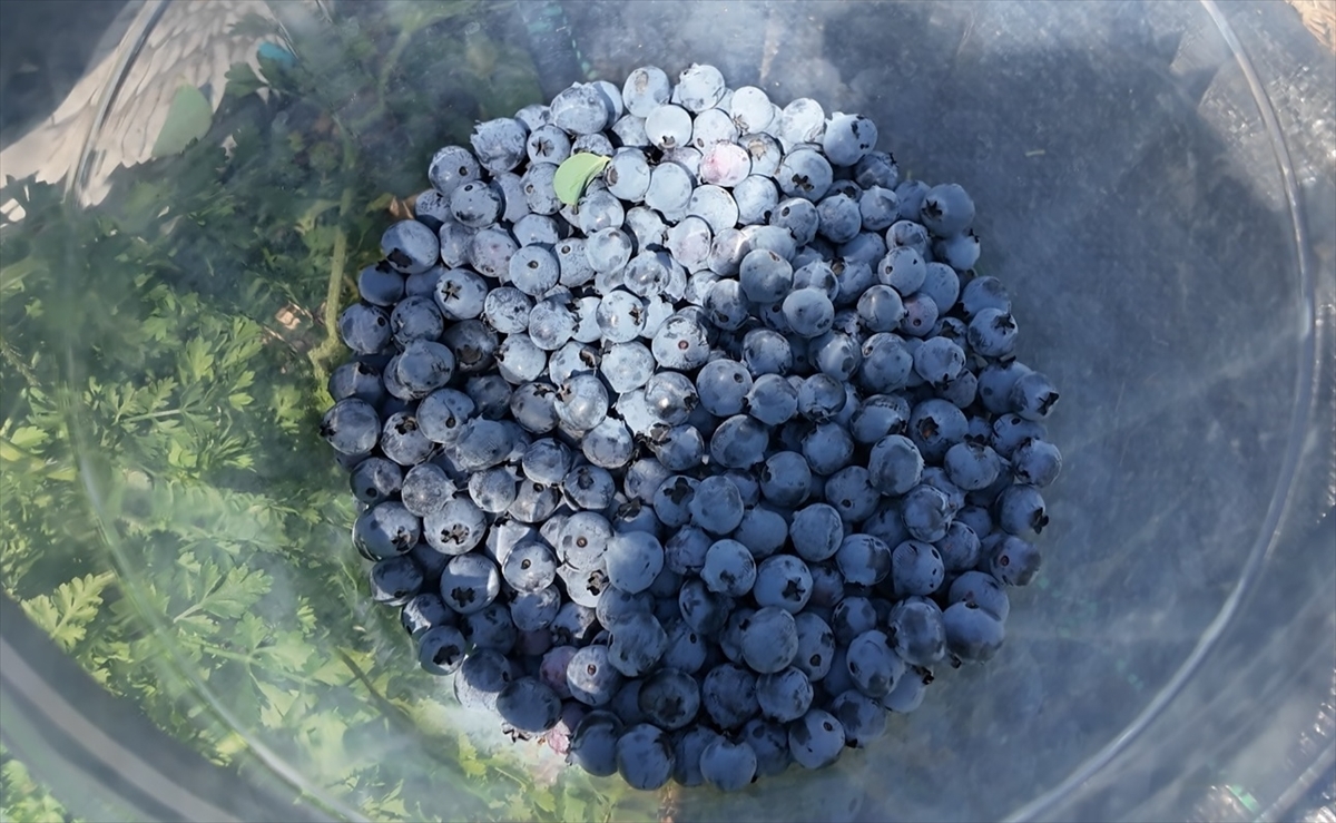 Bu bahçeden mavi yemiş almak isteyenler kendileri topluyor.
