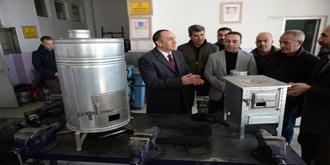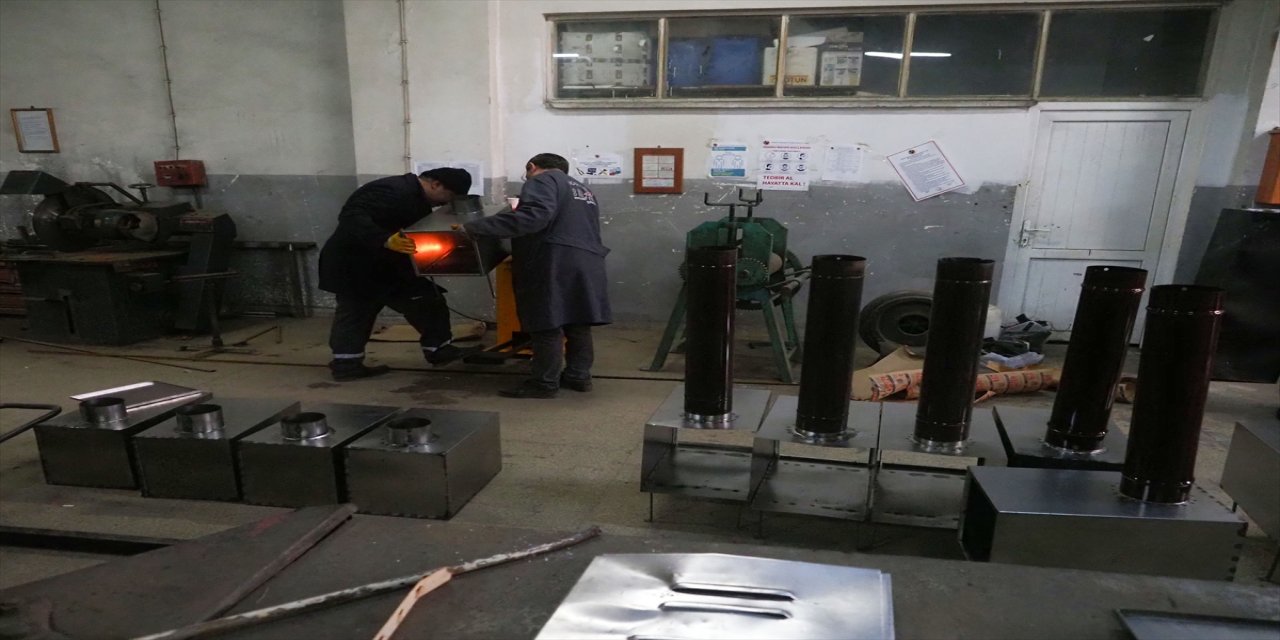Ağrı'da öğrenciler depremzedeler için soba üretiyor.
