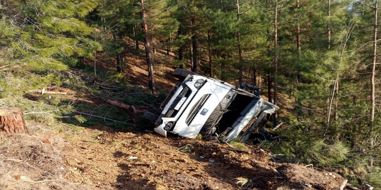 Mersin'de devrilen tomruk yüklü kamyonun sürücüsü yaralandı