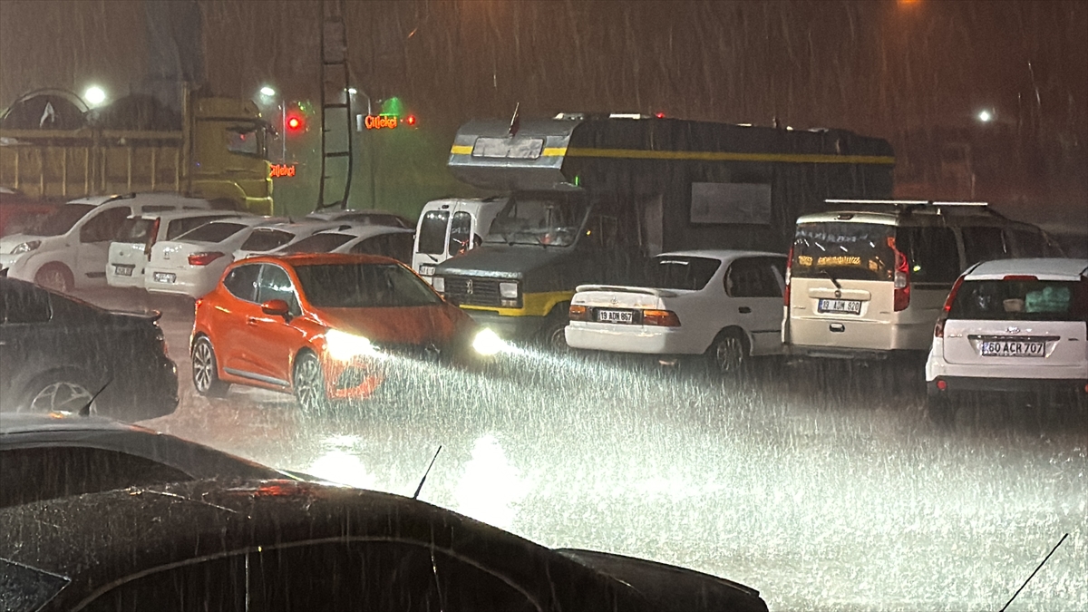 Hatay'da sağanak nedeniyle Toprakkale-İskenderun Otoyolu'nda araçlar mahsur kaldı