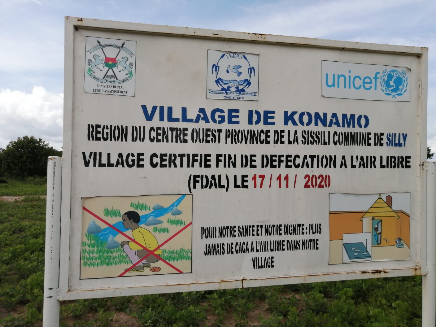 Unicef, köylere birer tabela asmış. Burada iki de resim koymuş. Bu tabloyla insanları tuvalet kullanmaya teşvik etmişler. Sonra ne mi olmuş? Köylerin köyün ortasında köyün isminin yazılı olduğu bir tabelası olmuş. Sanıyorum bu tabelalar daha çok bizim gibi köye gelen yabancıların işine yarıyor. Zira bu tabeladan hangi köye geldiklerini öğreniyorlar.