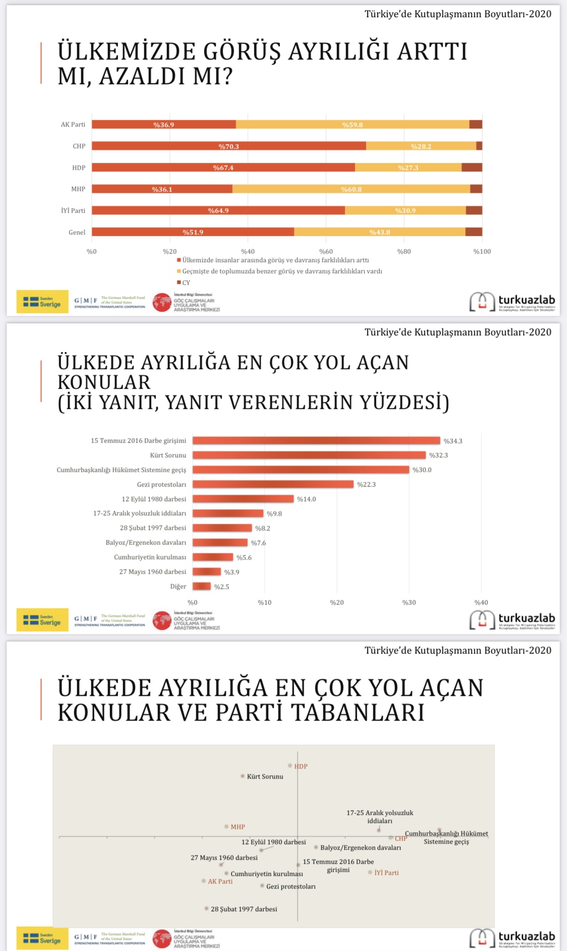 CHP (%70), HDP (%67) ve İYİ Parti (%65) taraftarlarıysa günümüzde görüş ayrılıklarının daha fazla olduğunu düşünüyor.