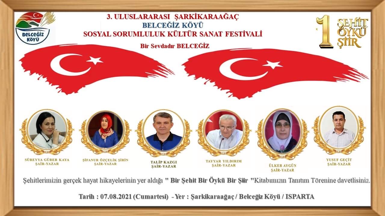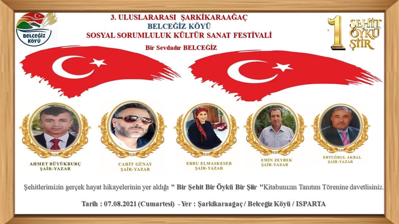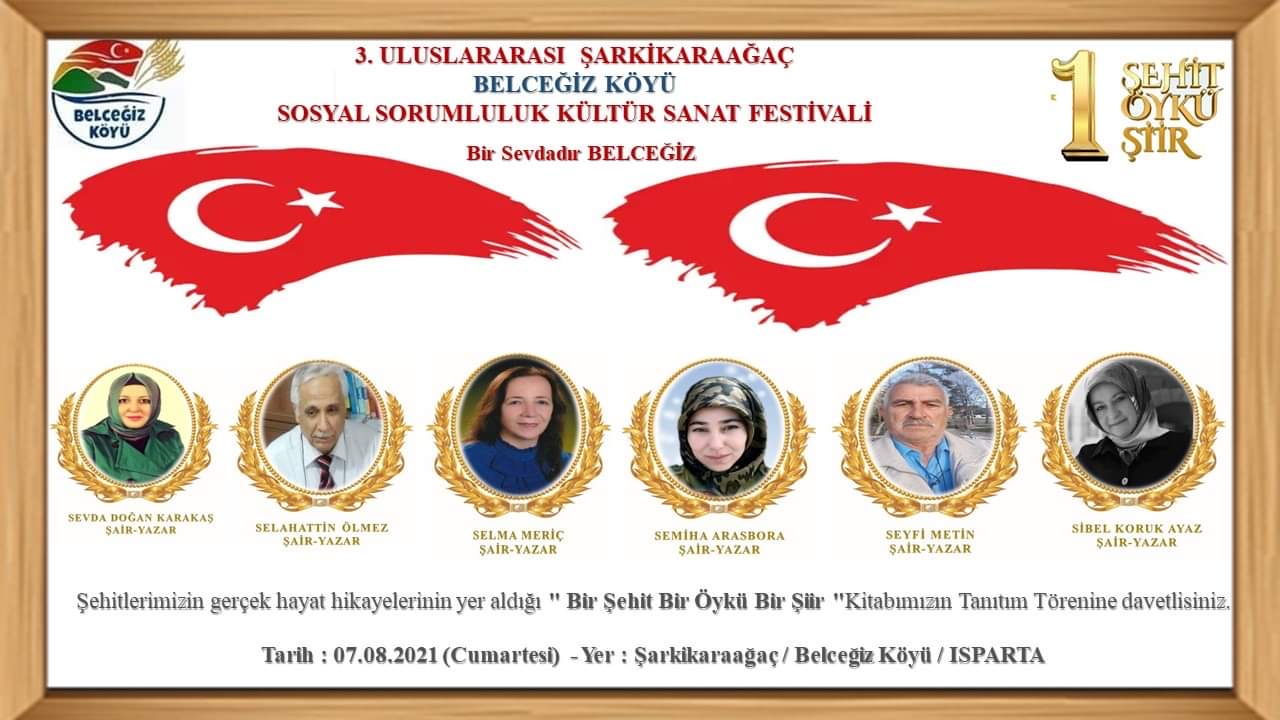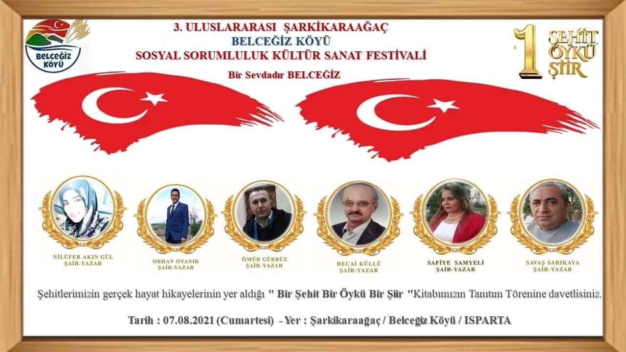 Eserimiz 3. Uluslararası Isparta Şarkikaraağaç Sosyal Sorumluluk Kültür Sanat festivali Belceğiz köyünde 07:08 2021 saat: 13 gerçekleşecek tören ile Türk halkına takdim edilecektir.