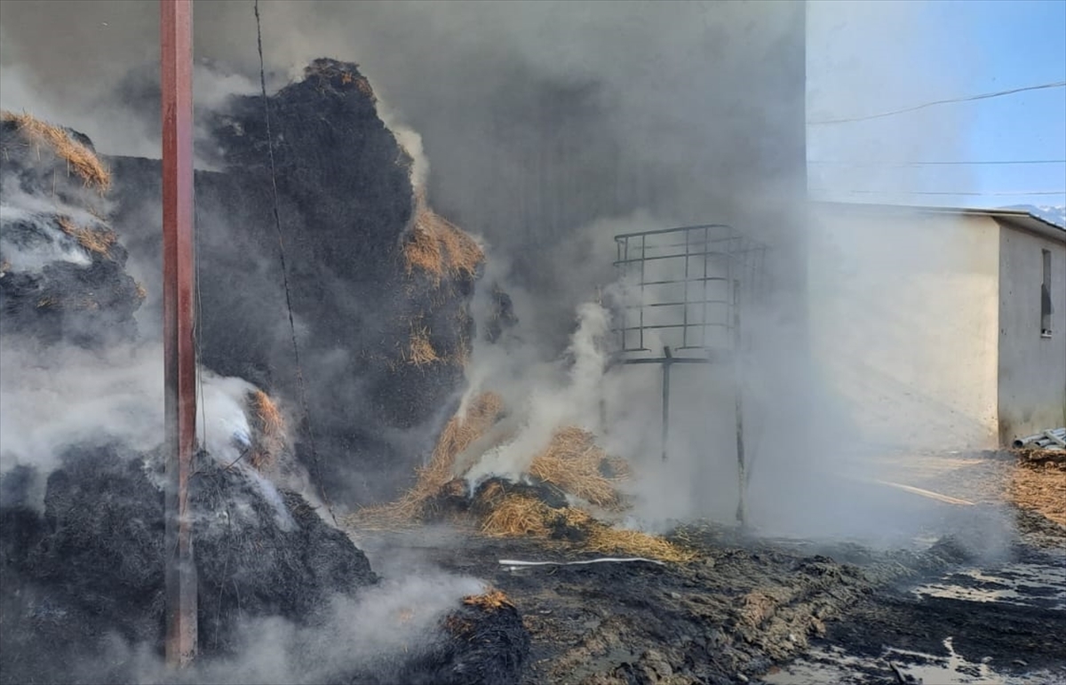 Burdur'da çiftlikte çıkan yangında tonlarca saman balyası zarar gördü